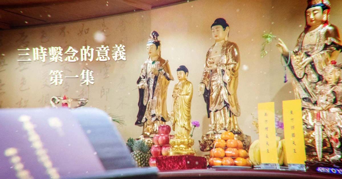三時繫念法事乃元朝中峰國師所提倡,目的在超薦亡靈往生西方極樂世界,永離茫茫業海。然此儀軌所蘊含的精神,更令生者受用,生者若以至誠心讀誦聽講,並發願奉行,必能托質蓮胎,圓滿無上菩提。
