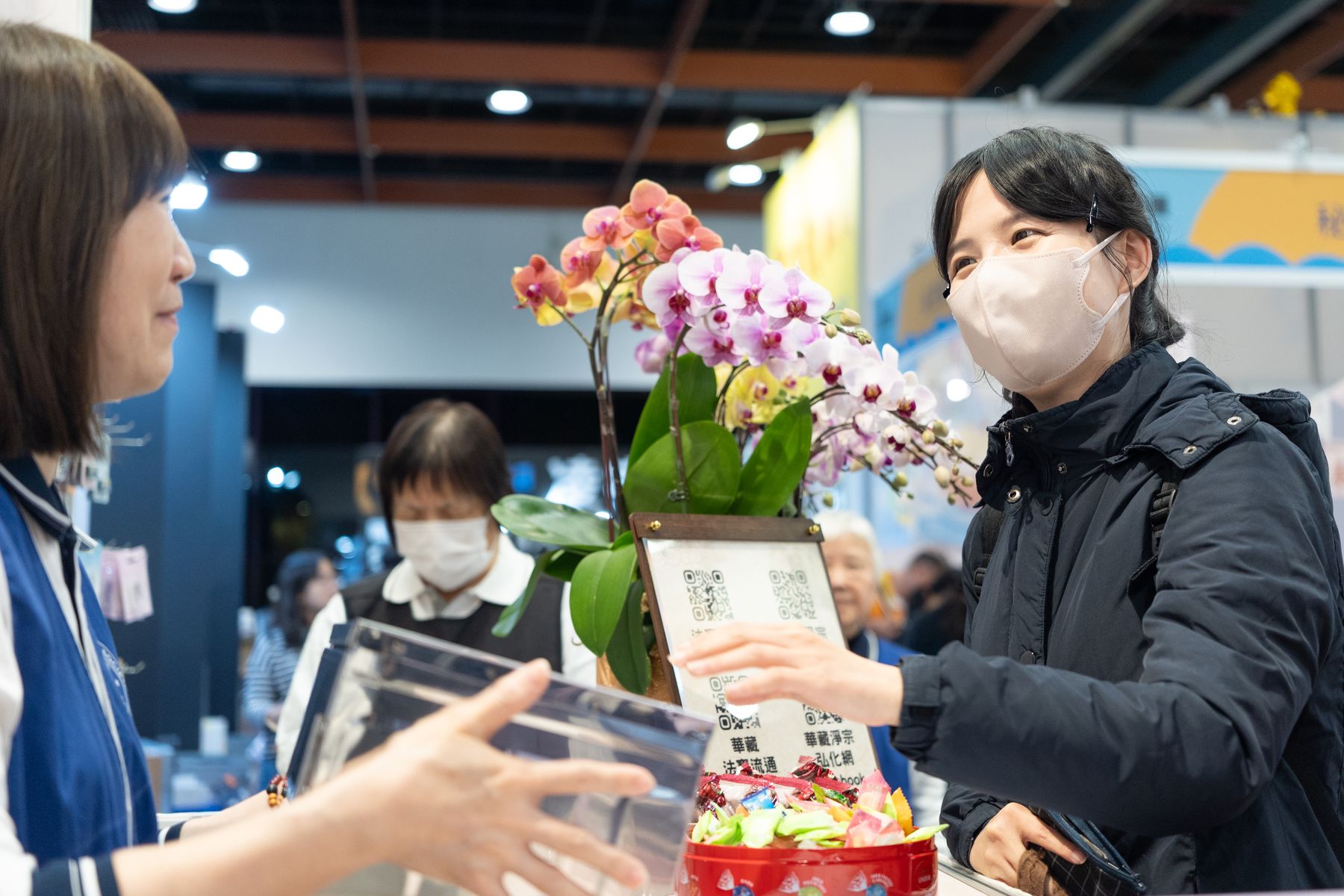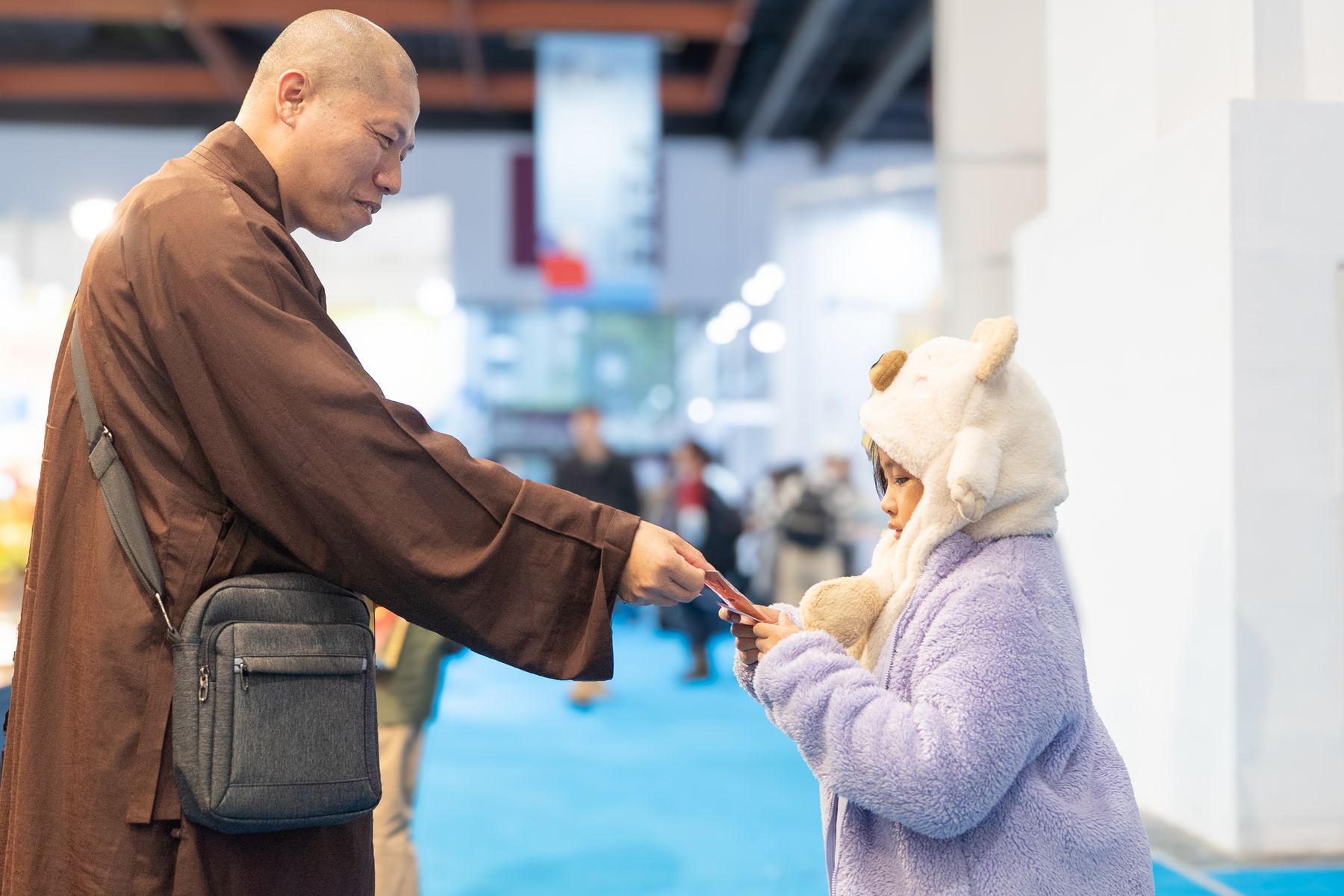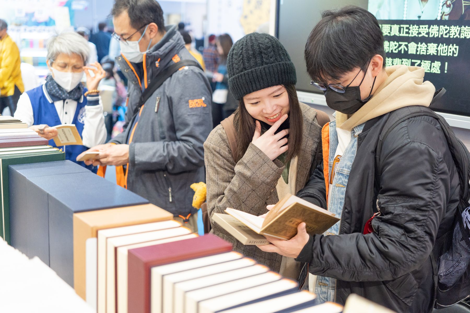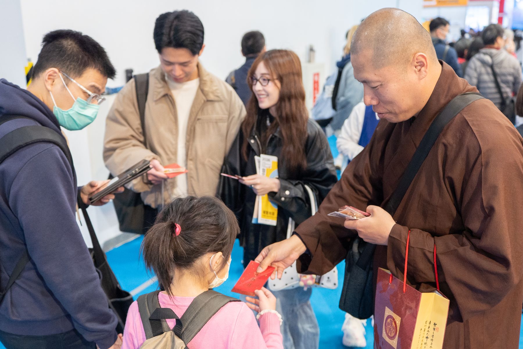2/4(三)台北國際書展華藏展區,現場人潮絡繹不絕,氣氛歡喜且溫暖,上悟下道法師與多位貴賓親臨會場,共同見證法教的傳承與感動。