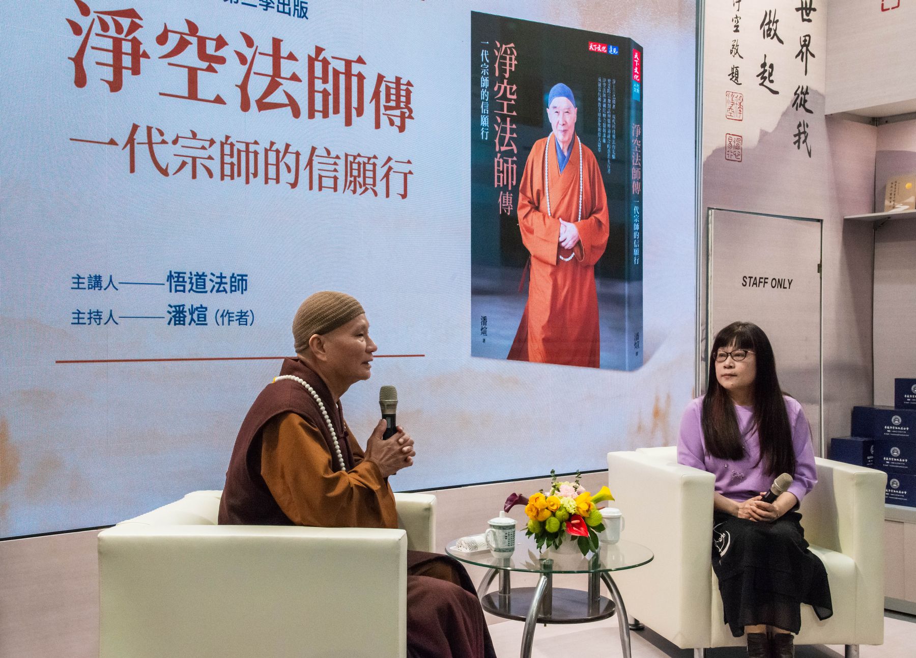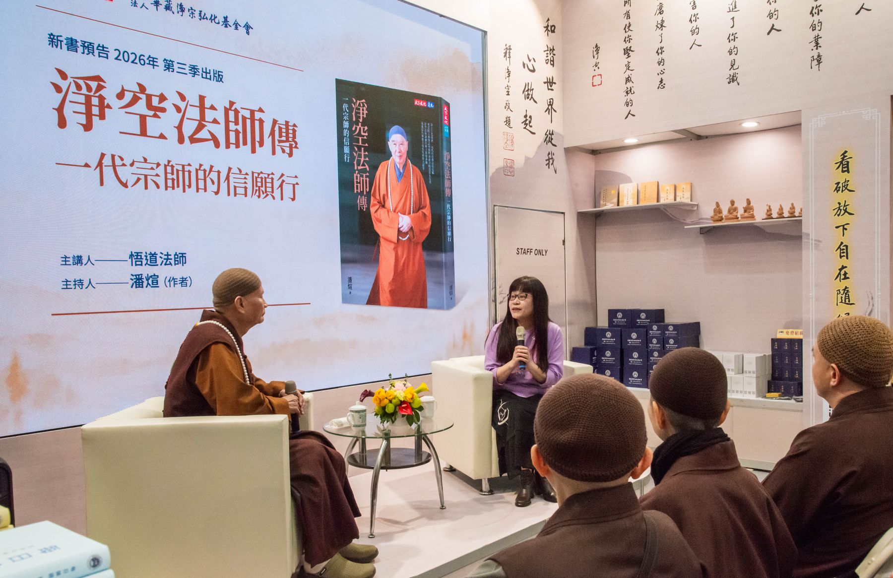 首先登場的是天下文化新書預告《淨空法師傳——一代宗師的信願行》,由悟道法師與作者潘煊對談分享,從編寫緣起、資料梳理到精神主軸層層鋪陳,帶領大眾回顧老法師一生弘法利生的信、願、行實踐。透過深入對談,不僅呈現一代宗師的行誼風範,也讓讀者看見時代背景下堅定道心的力量,現場多次響起掌聲。