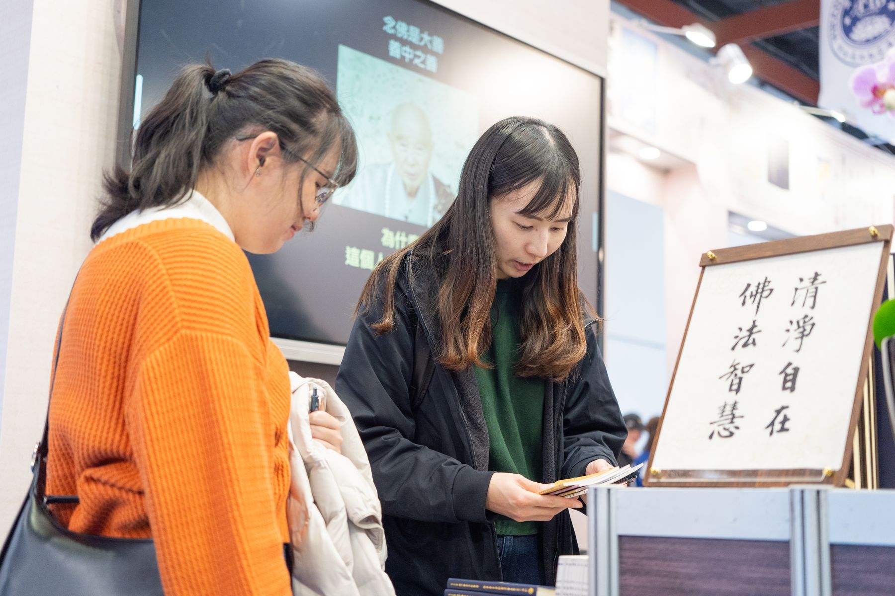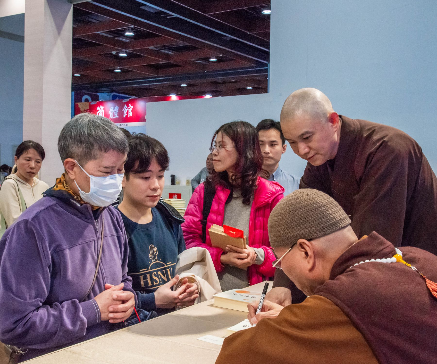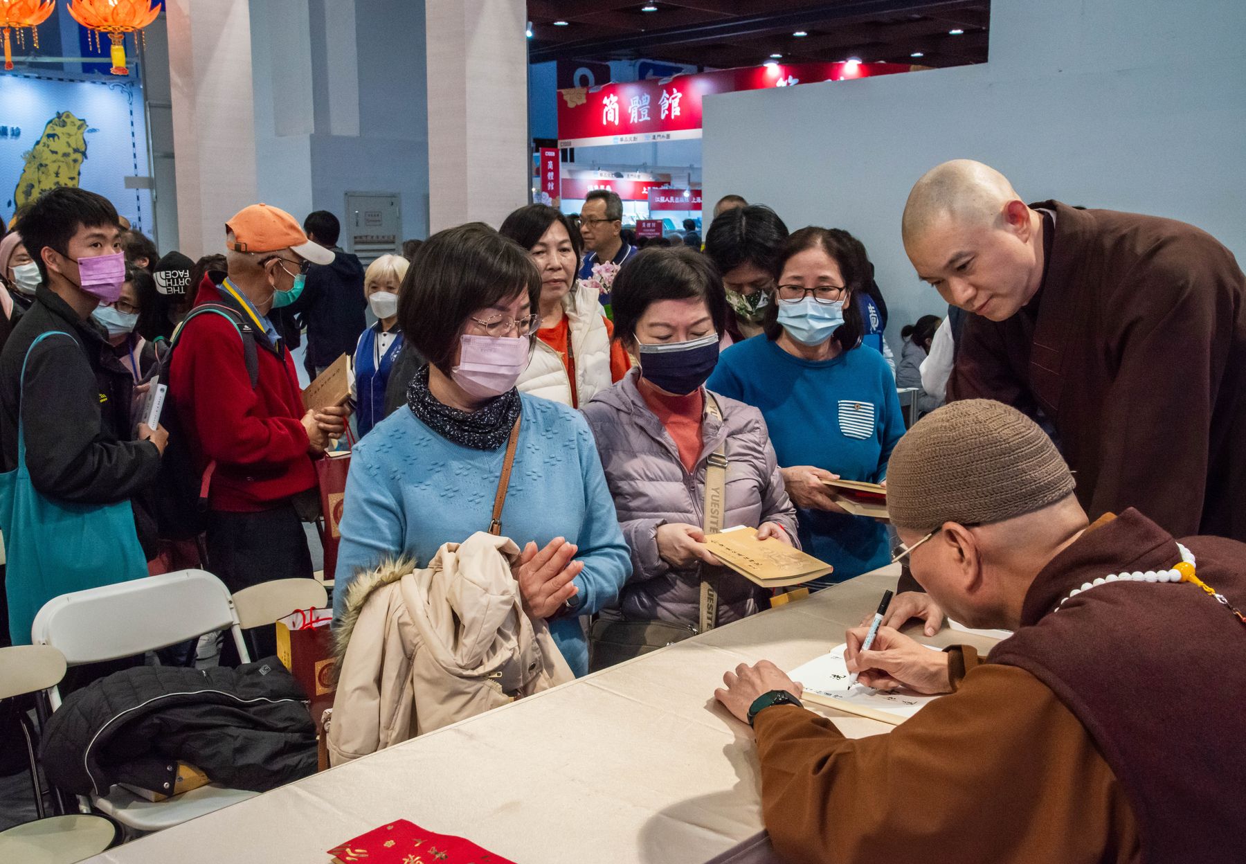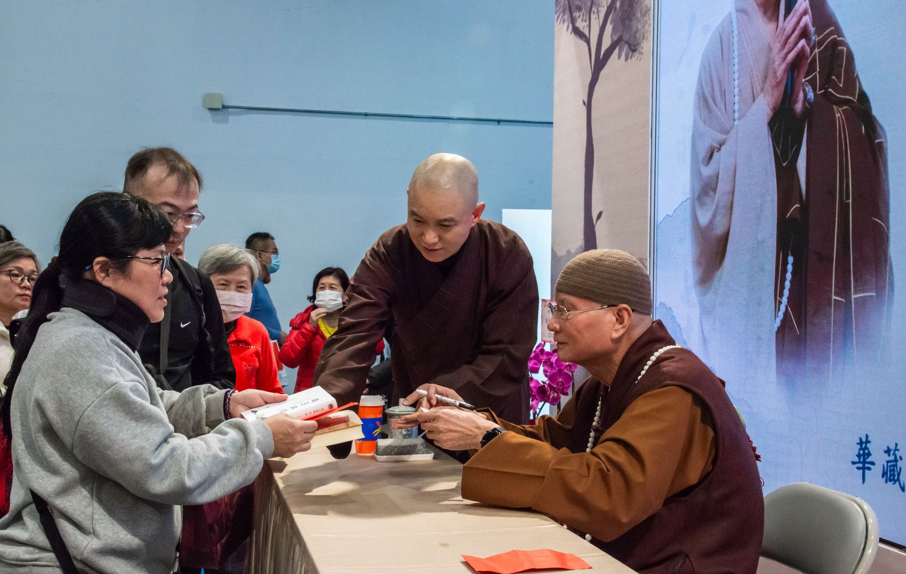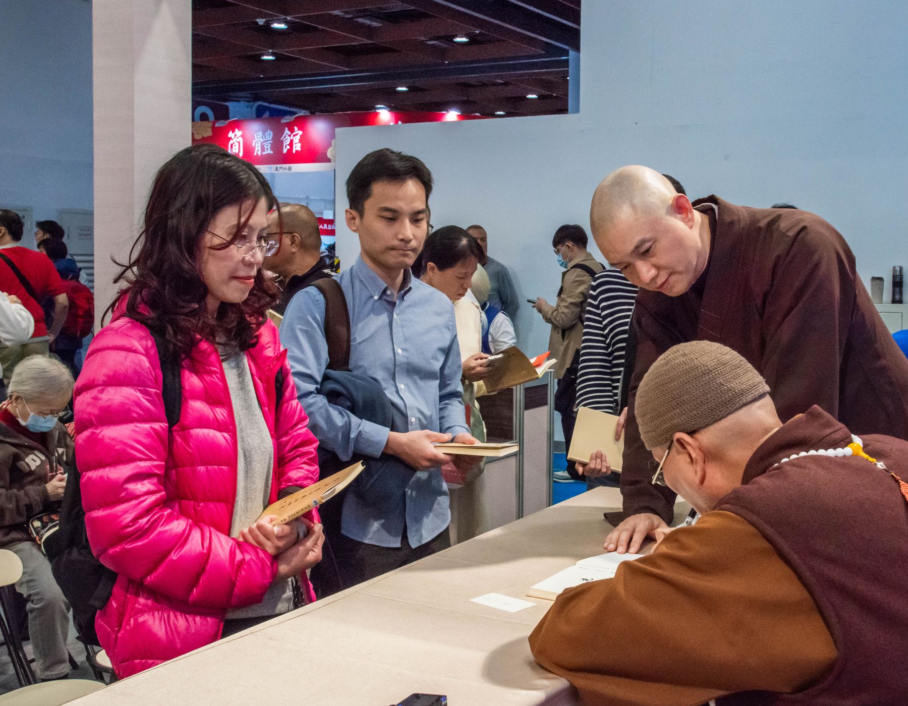 隨後舉行新書簽書會,《俞淨意公遇灶神記講記》與《每日論語》同步登場。悟道法師與讀者面對面交流,親切叮嚀修學要點,字字懇切。排隊簽書人潮綿延不斷,在書香與法語交織中,共結殊勝法緣,為今日書展畫下溫暖而深刻的句點。