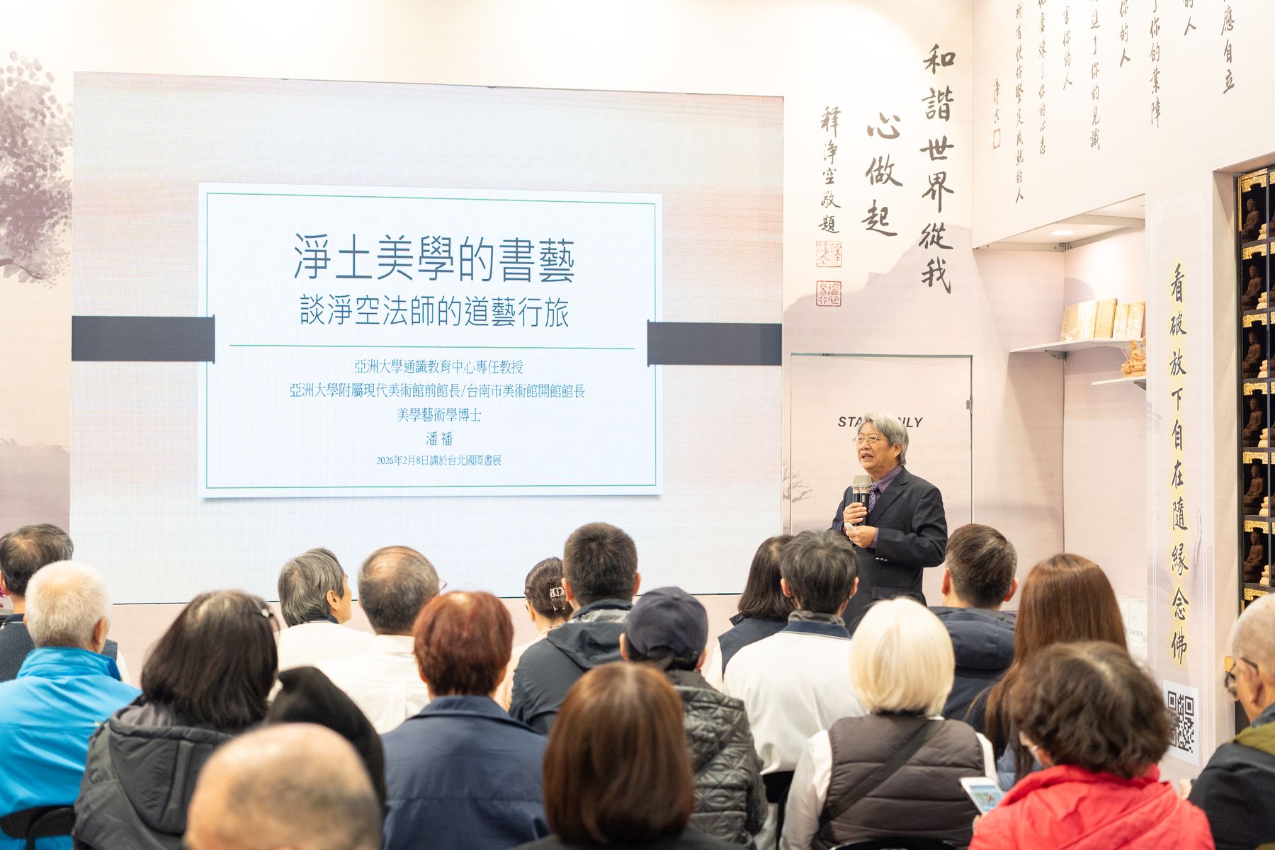 2/8(日)今日書展最後一天,華藏展區學術氣息濃厚,三場專題講座吸引眾多讀者與藝文愛好者到場,座無虛席,現場專注而安靜,展現對書藝與修學內涵的高度關注。