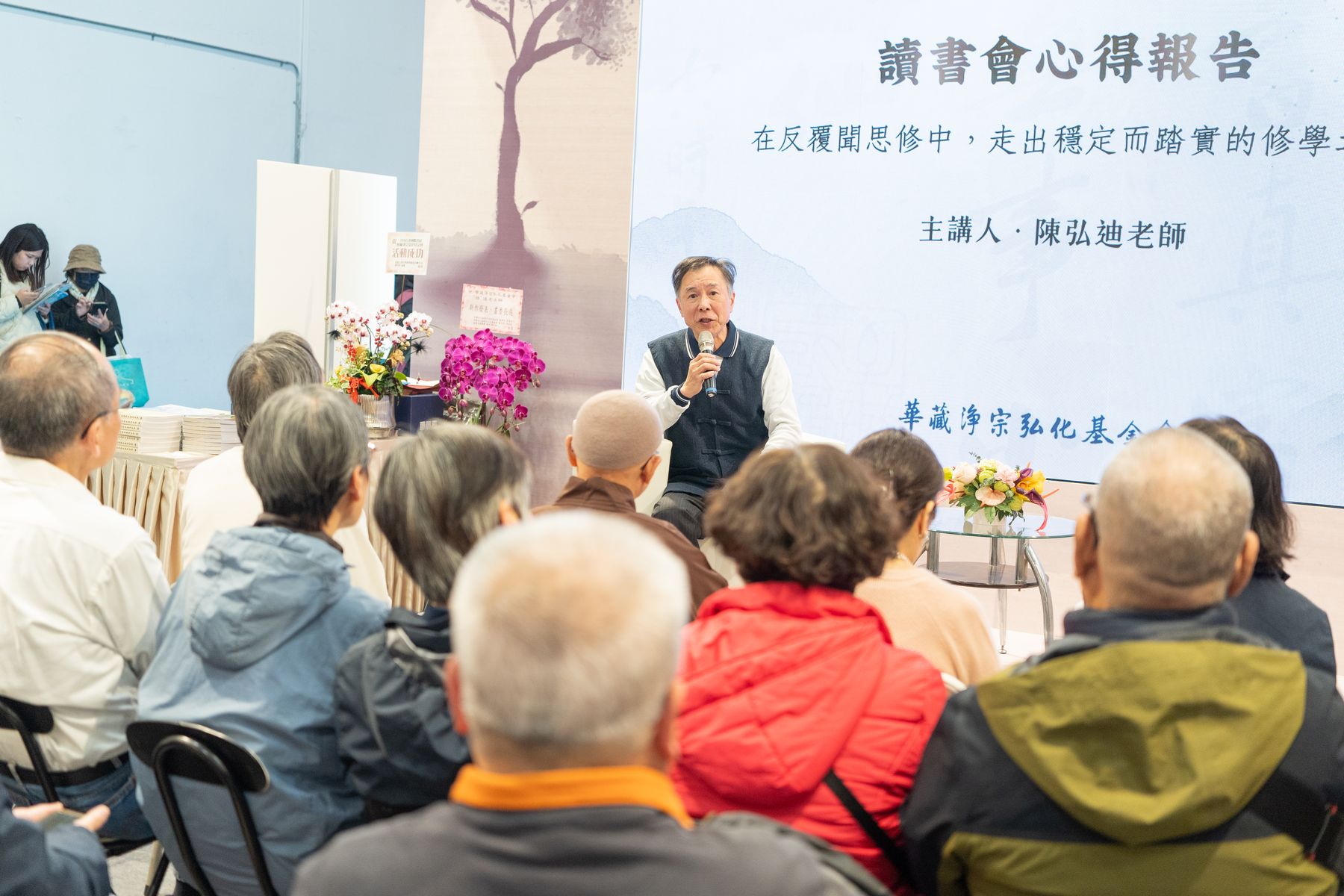2/6(五)書展現場人潮湧動,華藏展區三場活動次第展開,動靜交融,法喜充滿。許多讀者專程前來參與,座席幾近滿場,現場氣氛溫馨而專注。